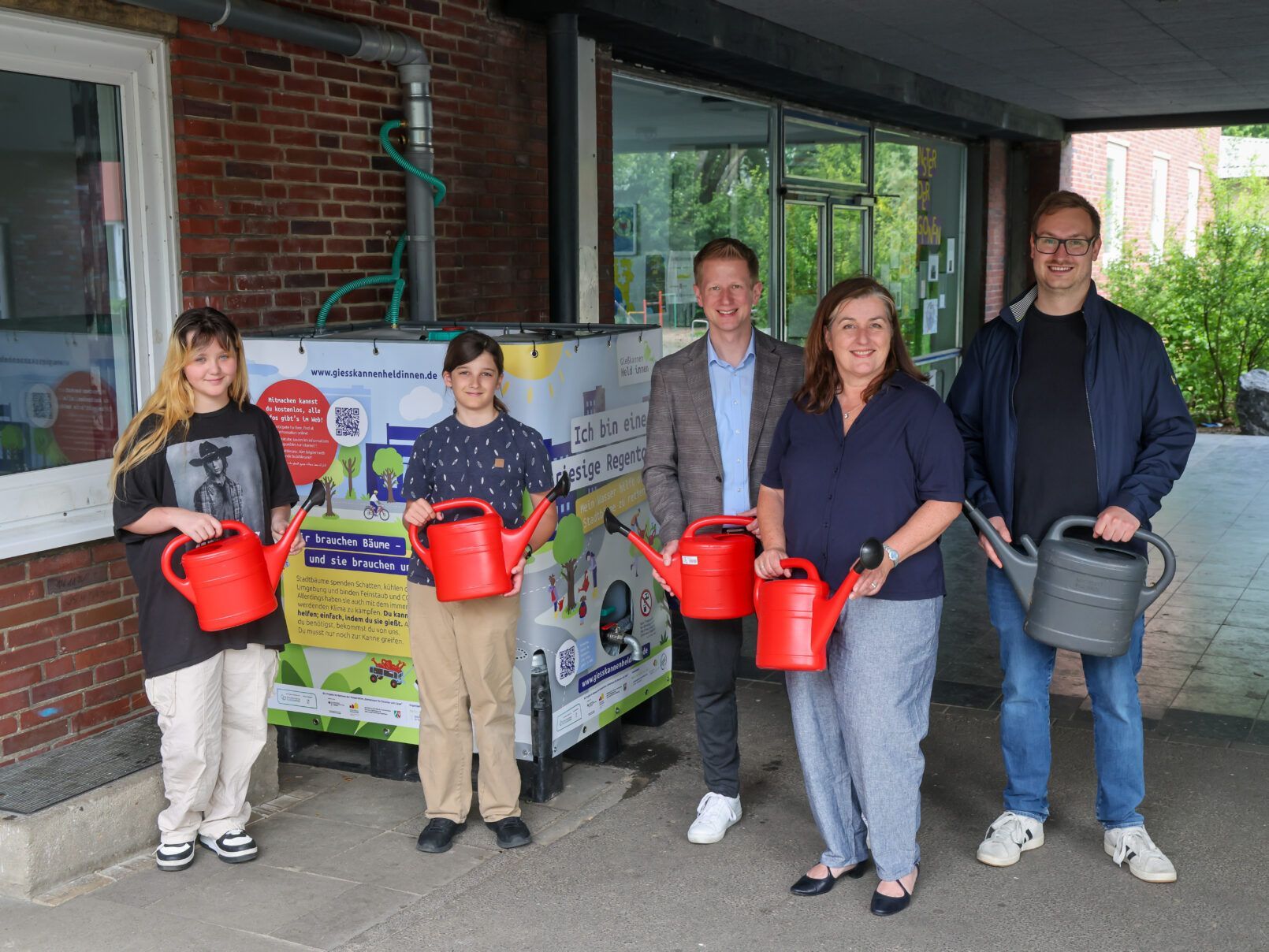Die Martin-Luther-Europaschule in Herten wird Teil des Projekts „Gießkannenheld:innen“ und freut sich, Schulbeete und Stadtgrün im kommenden Sommer nachhaltig mit Regenwasser versorgen zu können.