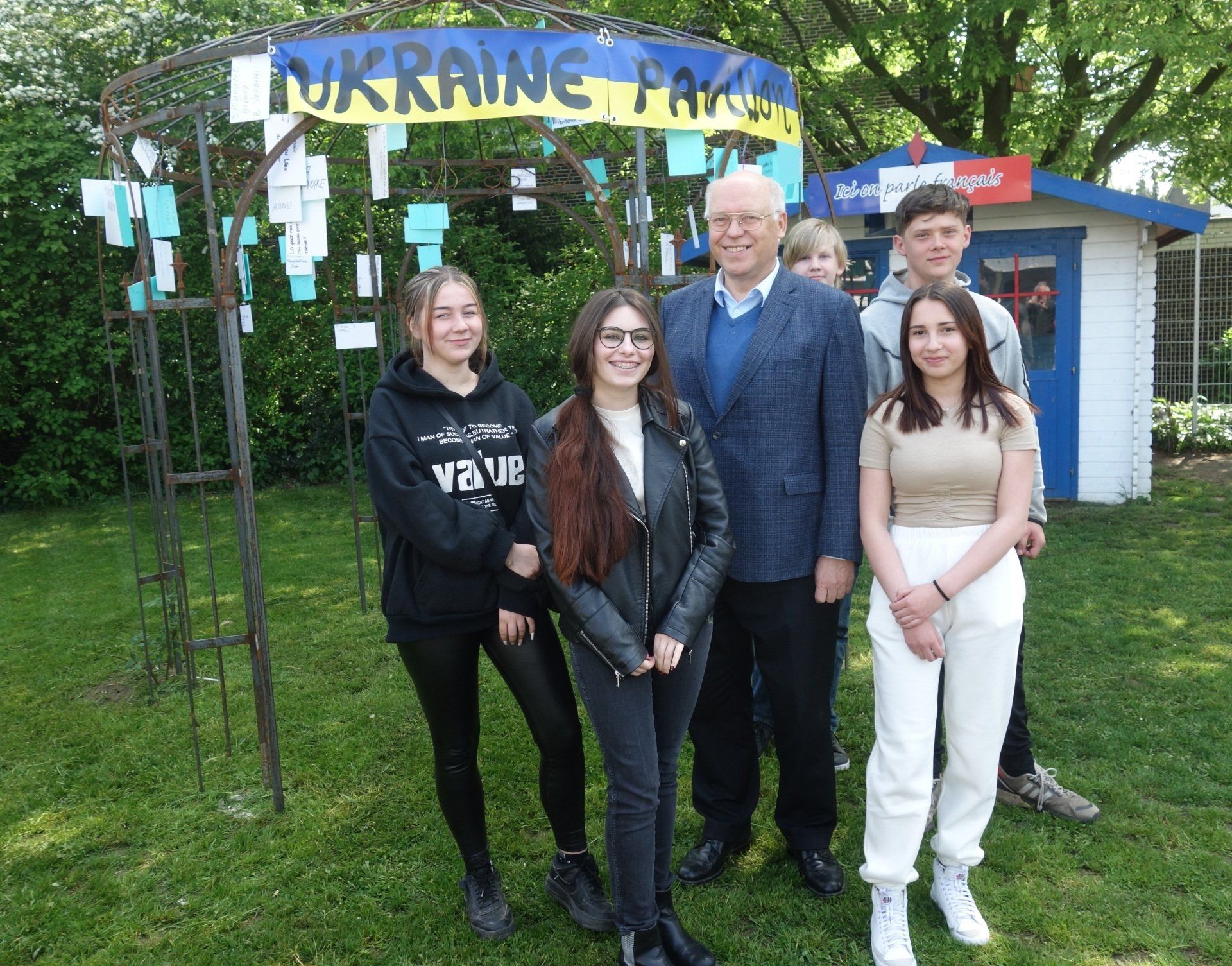 Jeder kennt diese Bilder aus dem Fernsehen, wenn hinter den Namensschildern der Länder der Welt gewichtige Persönlichkeiten aus den verschiedensten Nationen zu sehen sind. Hinter so einem Schild (Deutschland) saß Reinhard Krapp! Was für ein toller Arbeitsplatz, was für ein beneidenswerter Ort mitten im Weltgeschehen, direkt in der Kommunikationszentrale Vereinten Nationen! Nicoletta war fasziniert und in Gedanken saß sie auch schon auf gepackten Koffern, aber dann kam noch ein bedeutungsvoller Hinweis an alle Schüler*innen vom Spezialisten persönlich: „Lernt moderne Fremdsprachen, in erster Linie Englisch, stellt euch – je nach Einsatzort - auch auf das Erlernen weiterer Sprachen ein und hört hin, eine hohe Allgemeinbildung, große berufliche Flexibilität und die Bereitschaft, immer wieder etwas Neues zu erlernen, zu beobachten zu sortieren und zu vernetzen ist Grundvoraussetzung für so einen Job“. „Und wie sieht es mit dem Europa- und Umweltschwerpunkt unserer Schule aus?“, wollte Niklas wissen.