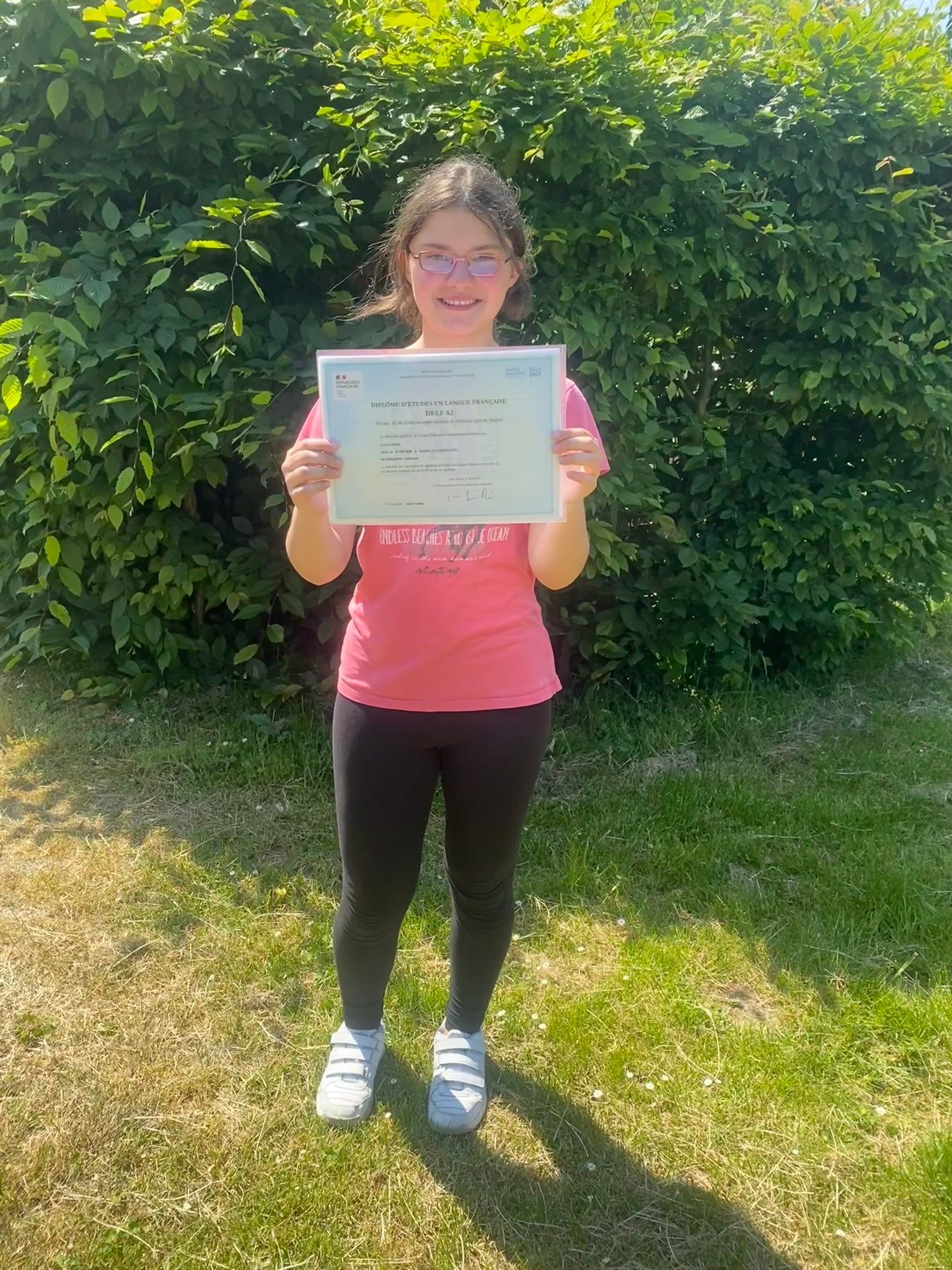 Auch dieses Jahr war die DELF AG wieder erfolgreich. Unsere stolze Schülerin erhielt in Französisch nun das Zertifikat im Niveau A2.