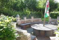 Im hinteren Teil des Schulgartens wird es fantastisch. Merlin, King Arthur und Excalibur im verwunschenen Stein verwandeln diesen Bereich in ein Sagenland, in dem Englands größte Sage aufersteht und wo wiederum nur Englisch - und bald auch, durch Lancelot, noch Französisch - gesprochen werden muss.